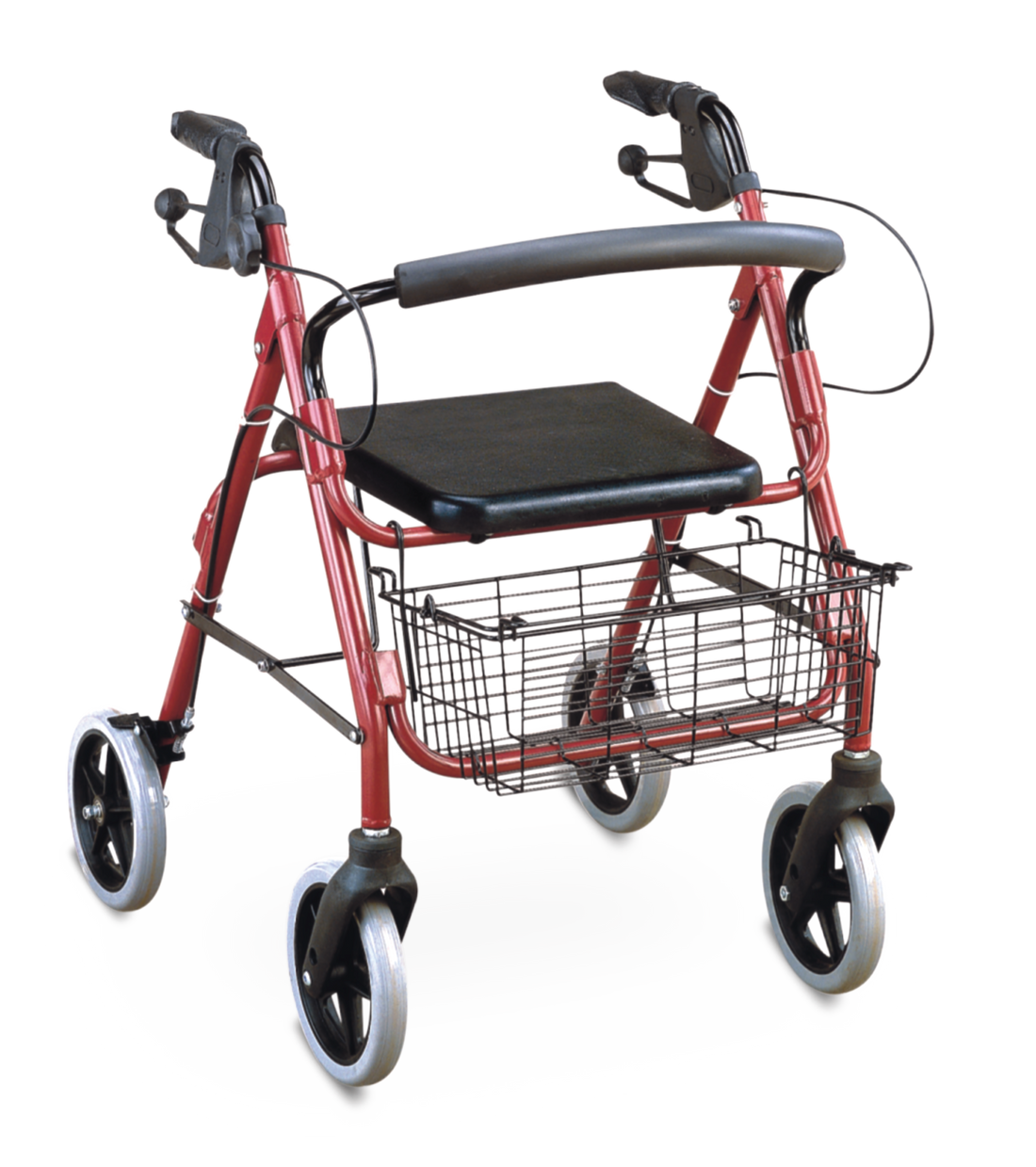8' Inches Wheels Light Weight Aluminum Rollator, Red For Elderly Basket