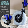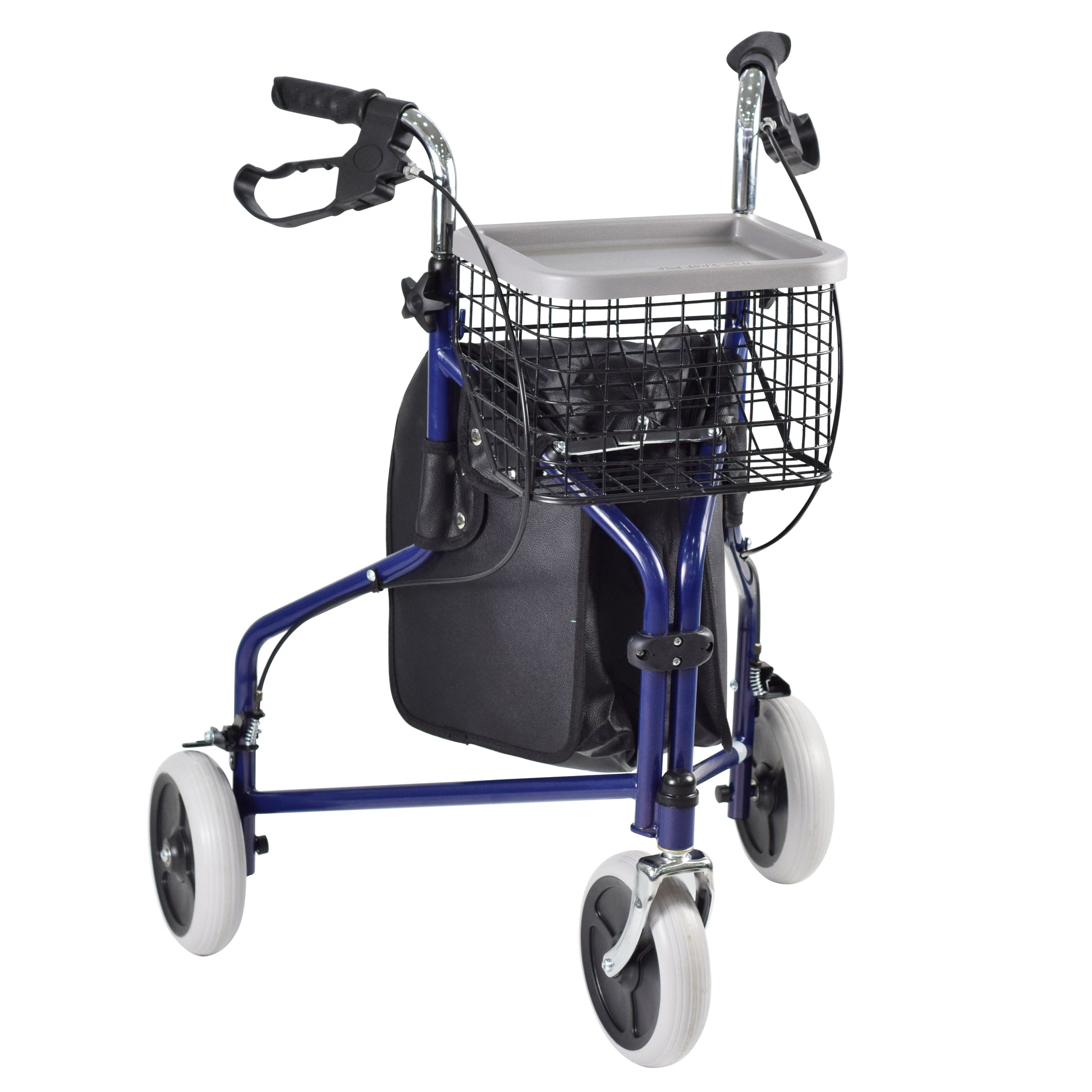 The Caremax Deluxe 3-wheel portable walker in gives you stable mobility coupled with lightweight maneuverability and ample storage. The 3-wheel rollator is more nimble than traditional rollators to easily navigate tight spaces like restaurants and aisles. The foldable walker easily collapses to a compact size and weighing just 8,5 Kg, it is easy to load into the trunk or back seat. Height-adjustable handles ensure a custom fit, while solid 19 cm wheels provide smooth support both indoors and outdoors. Loop locks under the handles operate like a bicycle handbrake to quickly stop the walker when needed; simply push these down to lock the wheels for a longer period of time. Ample storage includes a basket, tray, and removable pouch so you can carry items with ease.