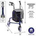 3 wheels Lightweight and Foldable Rollator for Disabled and Elderly