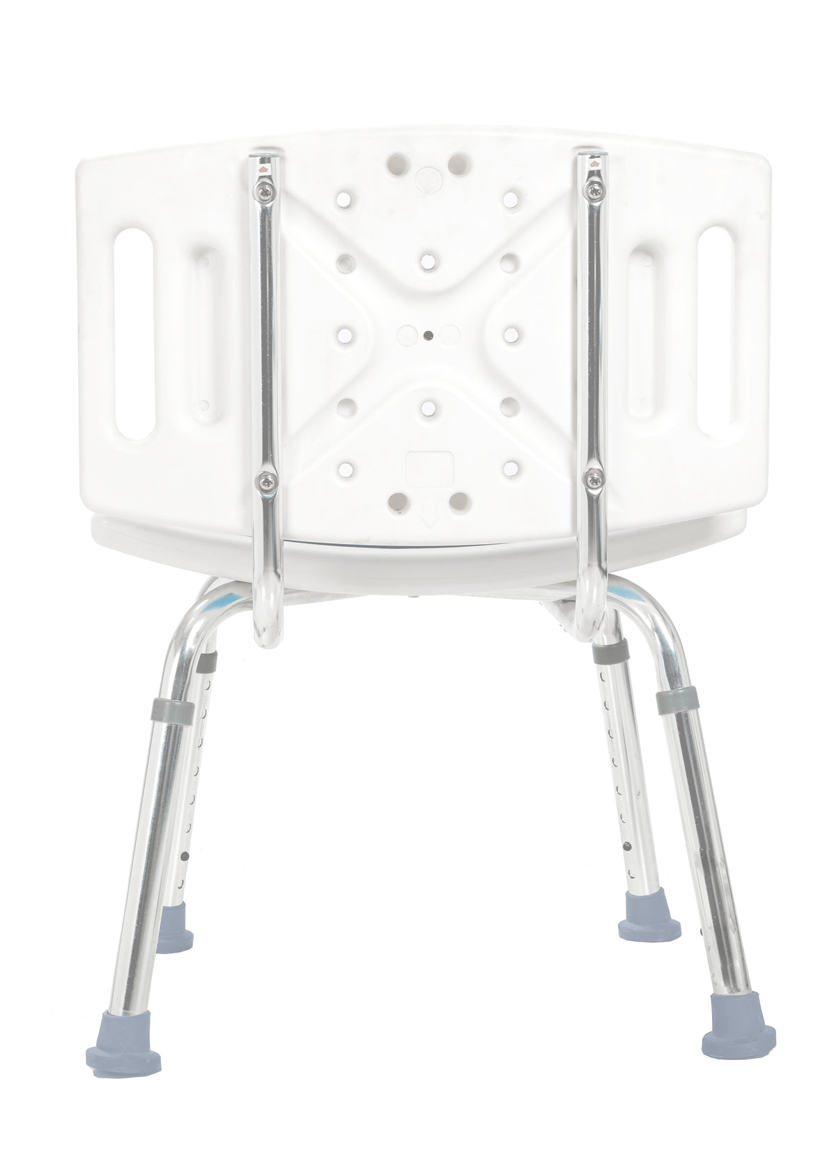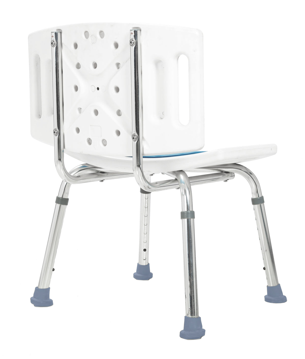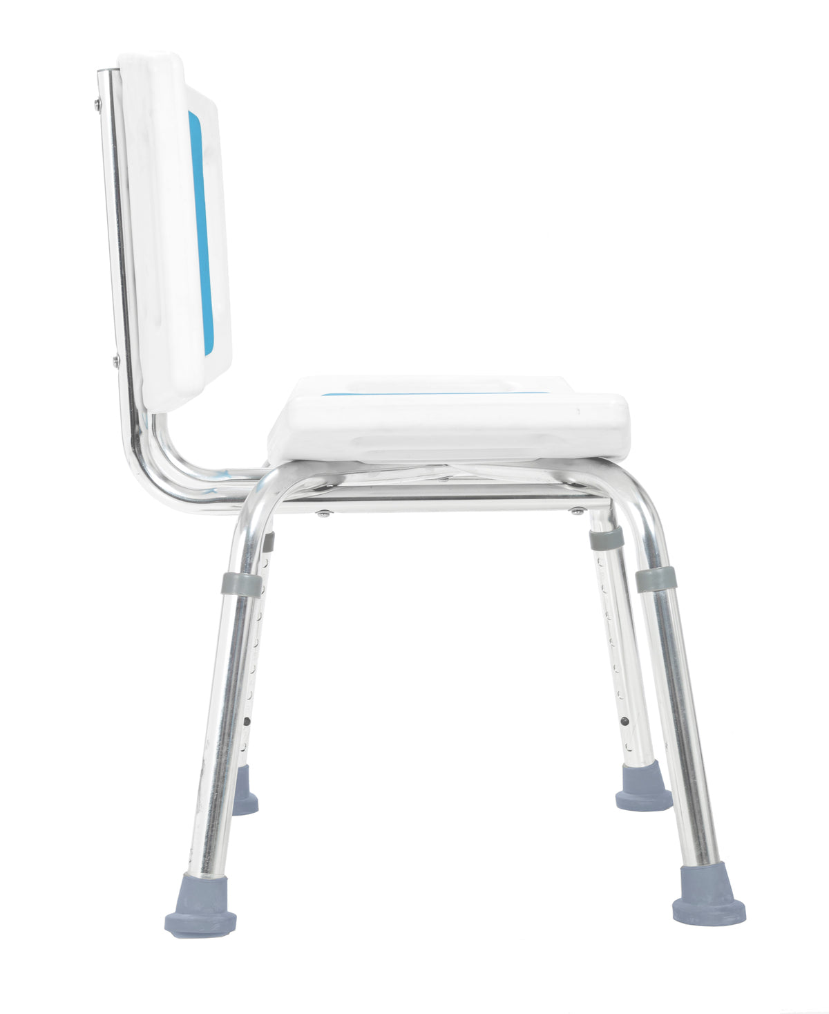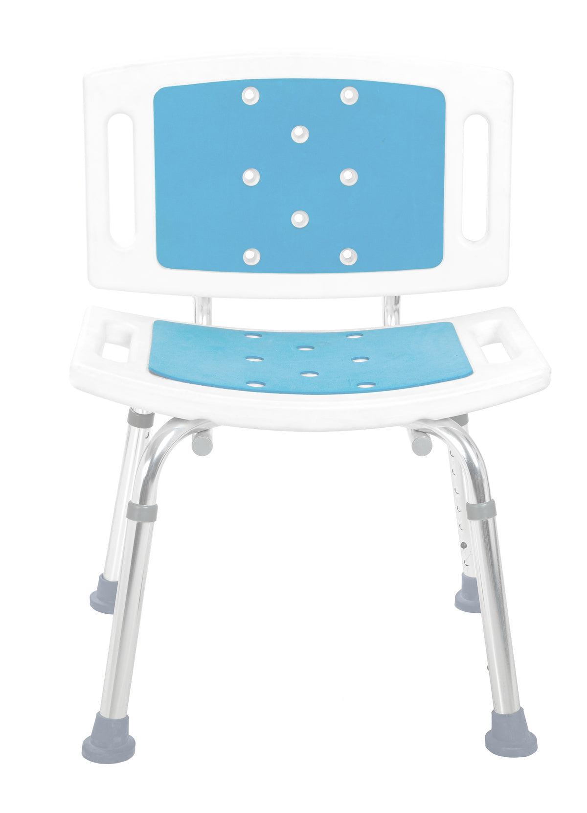 This shower chair is contoured for comfort and stability and comes with drainage holes to prevent slippage as well as the sturdy a-frame design prevents falls and breakage. The option to adjust the height makes it comfortable for any person.