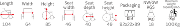 - Fixed armrest, fixed footrest